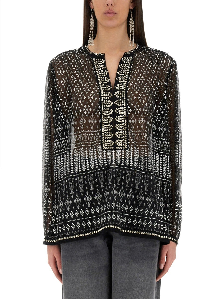 - 55% POLYESTER 45% METALLIC- MADE IN Poland- THE MODEL IS 180 CM TALL AND WEARS SIZE 36 FR