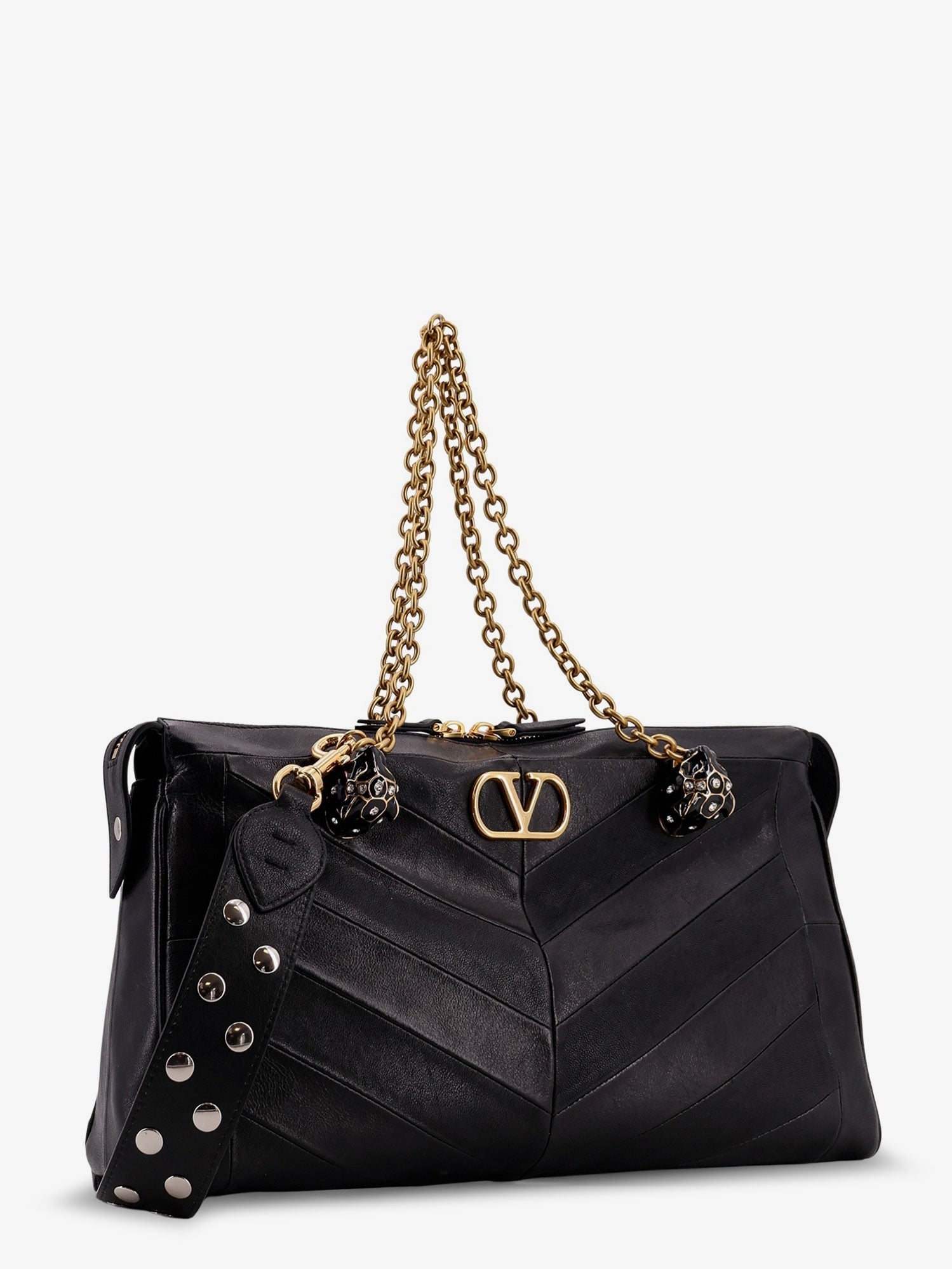 Chevron pattern with patchwork processing Feline head detail with Swarovski® crystals Zip closure with double slider Double metal shoulder strap Metal VLogo Signature element Removable studded leather shoulder strap Made in Italy Leather W: 33cm x H: 19.5cm x D: 9cm SKU: 8W2B0S70UYF0NO